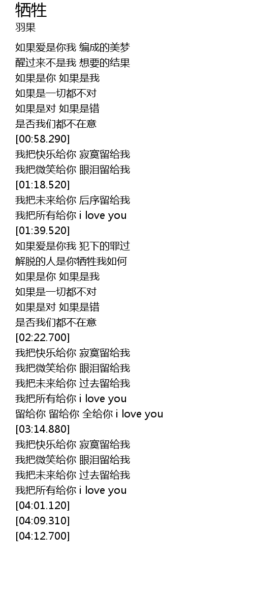 | [03:03.230] | 留给你 留给你 全给你 i love you |