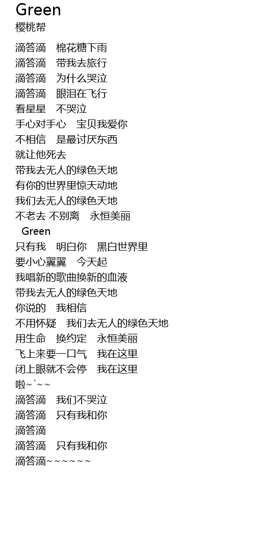 | [02:43.23] | 不用怀疑 我们去无人的绿色天地 |