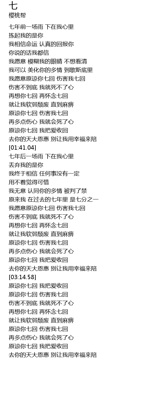 | [03:30.04] | 原谅你七回 伤害我七回 |