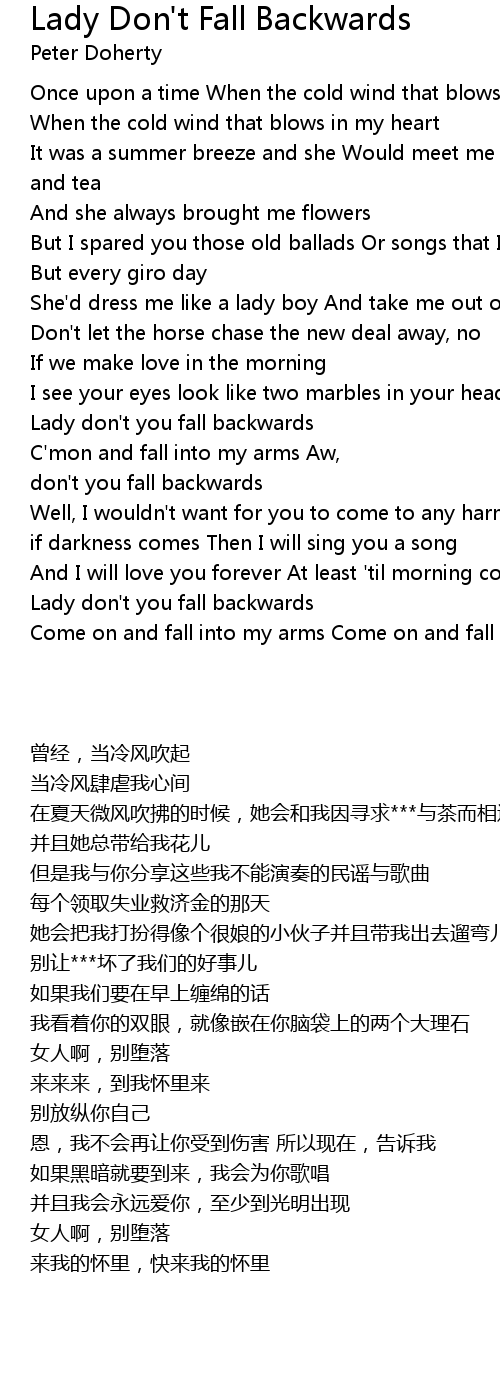 Lady don't you fall backwards |