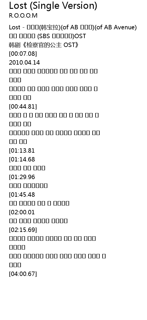 [00:01.37] Lost - 한보라(韩宝拉)(of AB 에비뉴)(of AB Avenue)