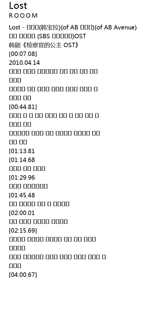 [00:01.37] Lost - 한보라(韩宝拉)(of AB 에비뉴)(of AB Avenue)