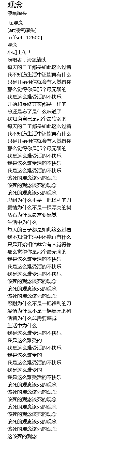 | [01:30.817] | gāi sǐ de guān niàn gāi sǐ de guān niàn |