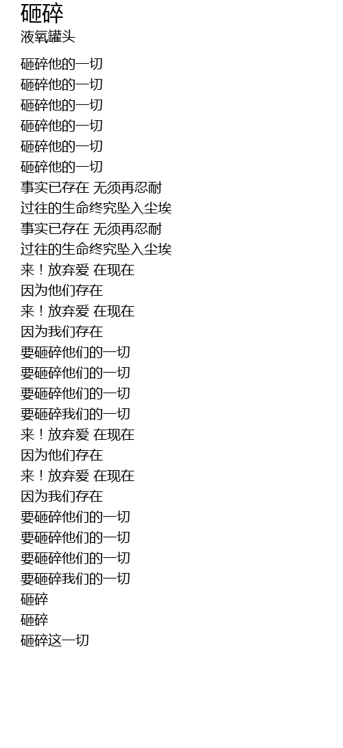 | [01:03] | yào zá suì wǒ men de yī qiè |