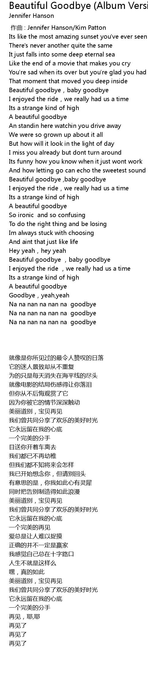 | [00:46.197] | Beautiful goodbye, baby goodbye |