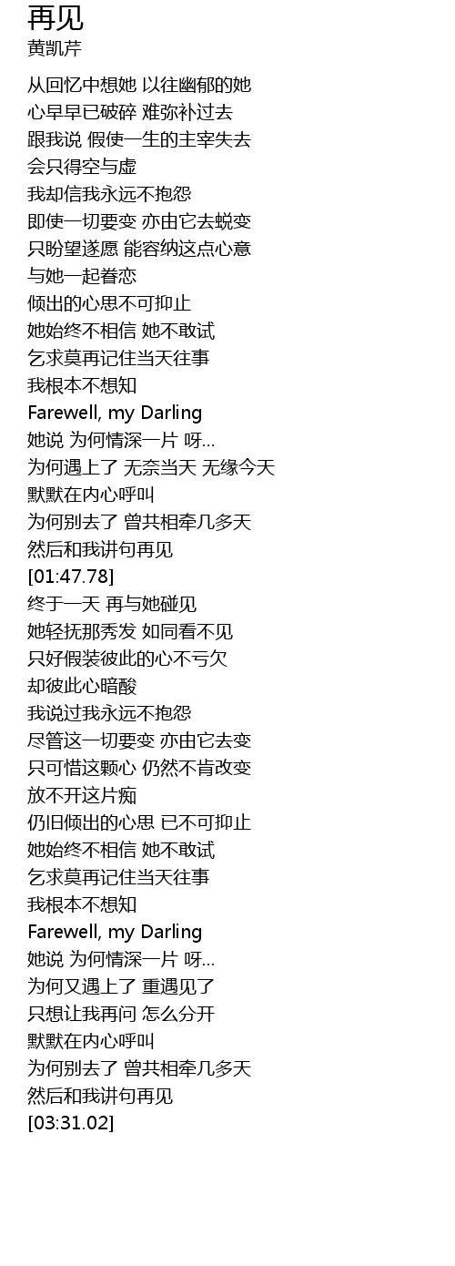 | [01:38.56] | rán hòu hé wǒ jiǎng jù zài jiàn |