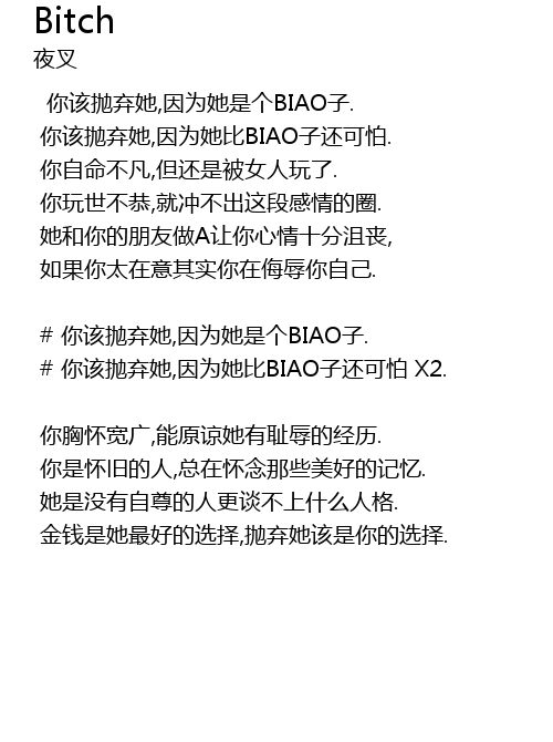 nǐ gāi pāo qì tā, yīn wèi tā shì gè BIAO zi.