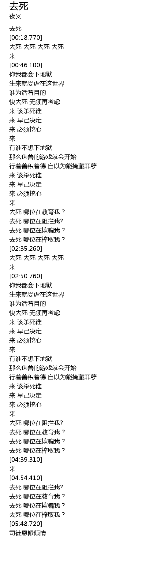 [00:38.510] qù sǐ qù sǐ qù sǐ qù sǐ