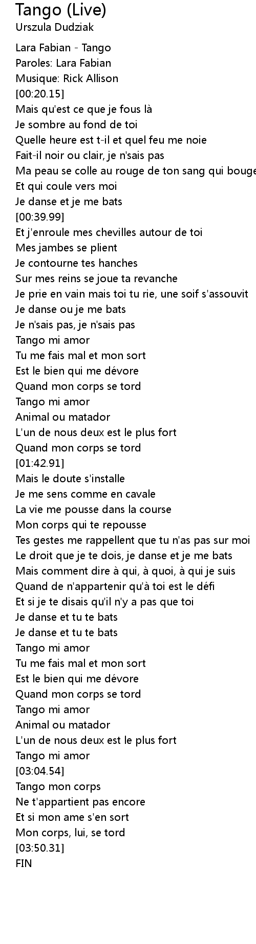 | [00:00.00] | Lara Fabian Tango |