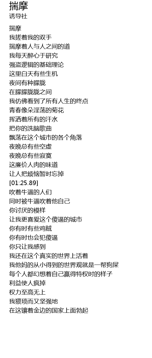 | [01:48.92] | 让我更喜爱这个傻逼的城市 |