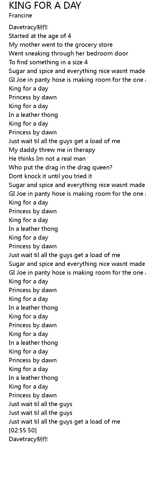 | [00:35.50] | King for a day |