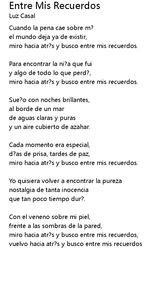miro hacia atr?s y busco entre mis recuerdos, |