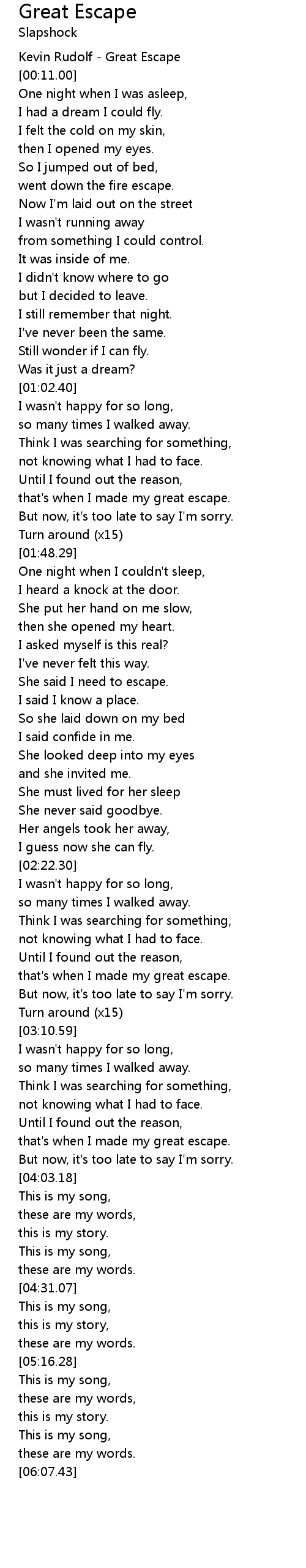 | [00:02.00] | Kevin Rudolf - Great Escape |