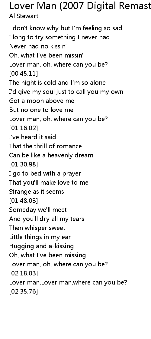 Lover man, oh, where can you be? |