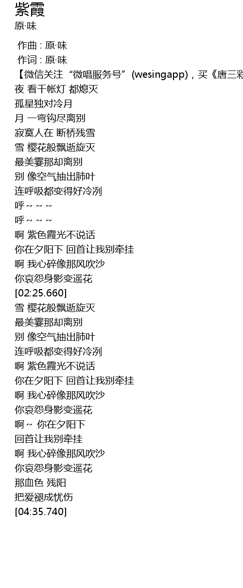 紫霞 歌词