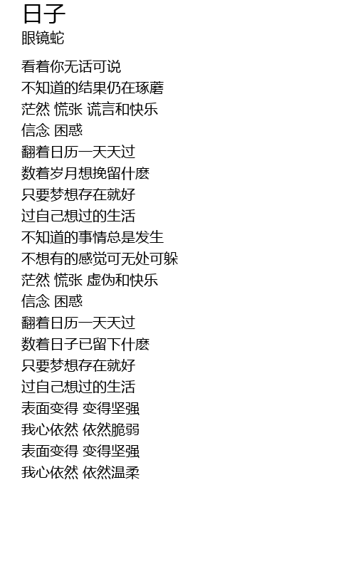 | [01:39.20] | fan zhe ri li yi tian tian guo |