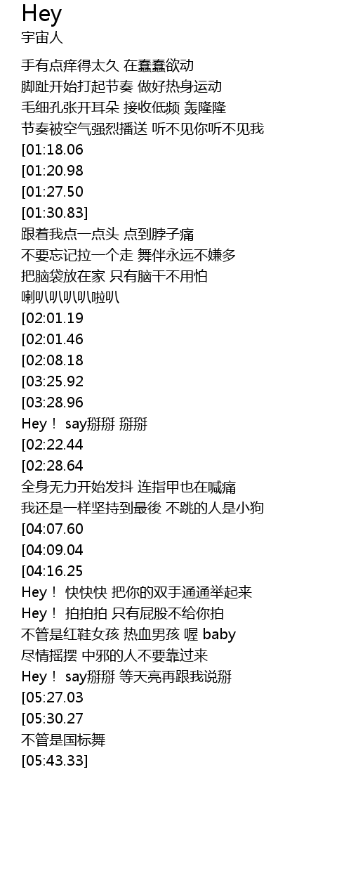 | [04:51.62] | Hey! 快快快 把你的双手通通举起来 |