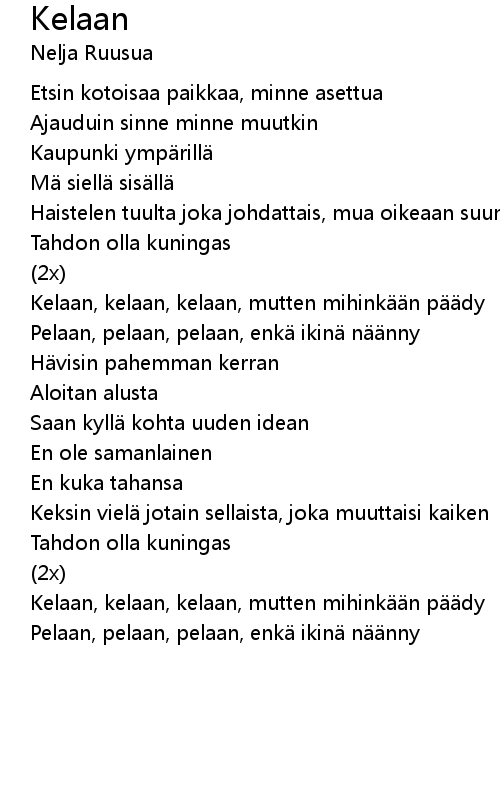 | Kelaan, kelaan, kelaan, mutten mihink n p dy | |