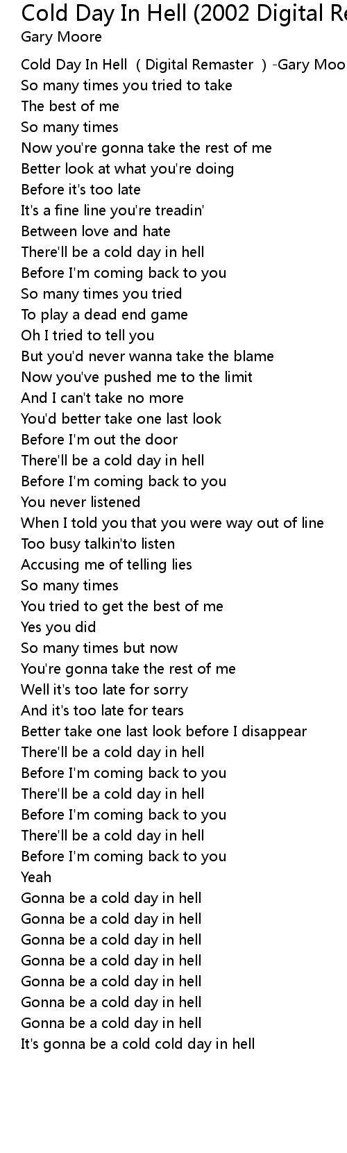 | [00:00.00] | Cold Day In Hell (Digital Remaster )-Gary Moore |