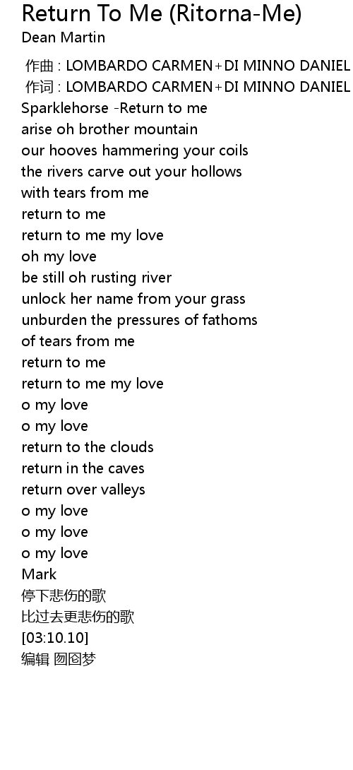 | 歌曲 | Return To Me (Ritorna-Me) |