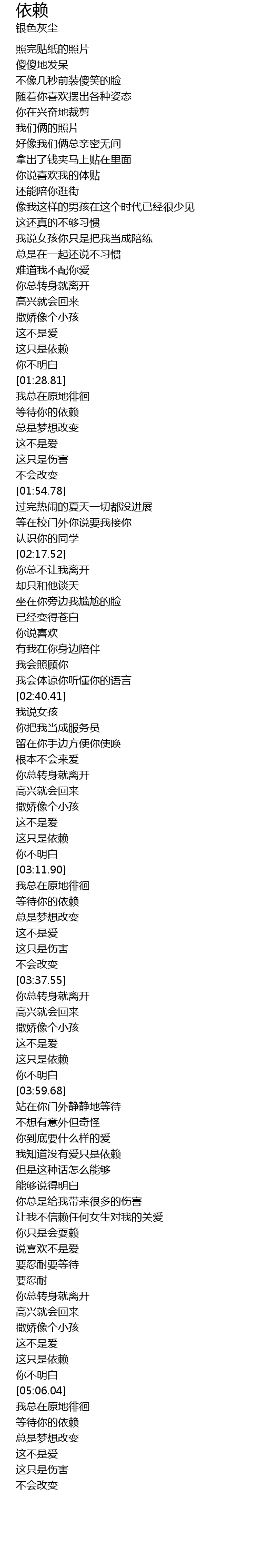 | [04:30.08] | 我知道没有爱只是依赖 |