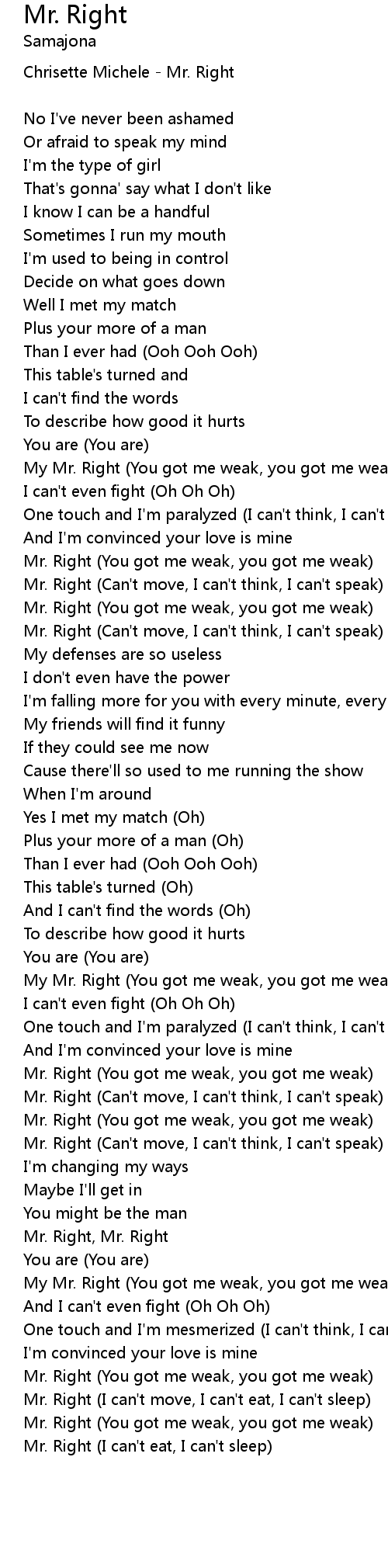 Mr. Right (You got me weak, you got me weak) |