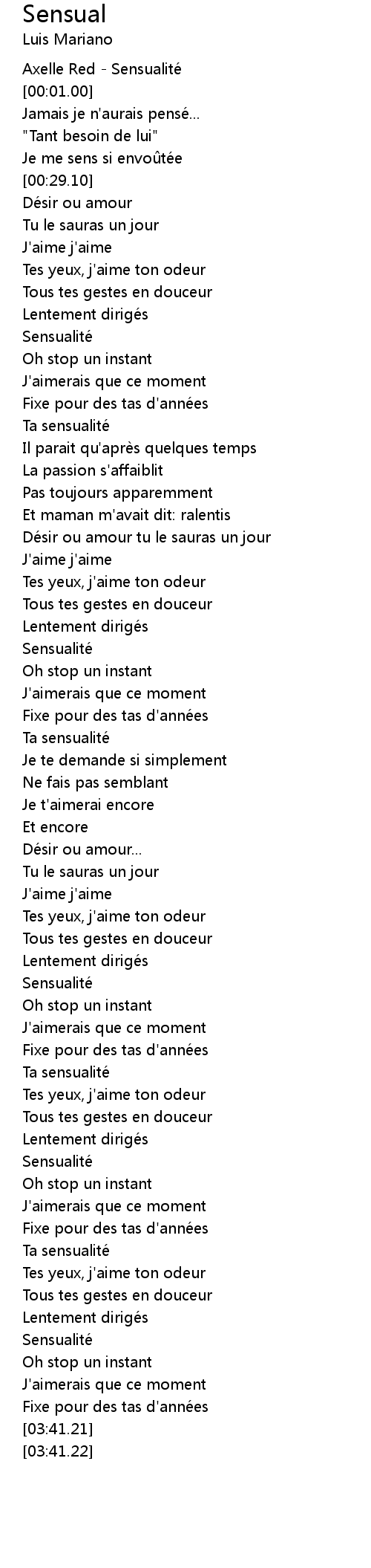 | [03:22.44] | Tes yeux, j'aime ton odeur |