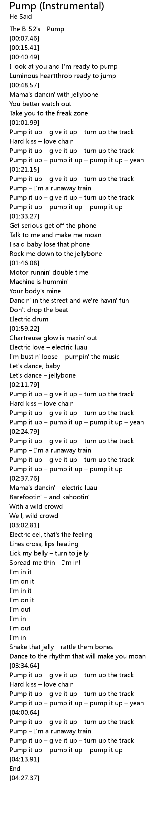 | [02:34.73] | Pump it up – pump it up – pump it up |