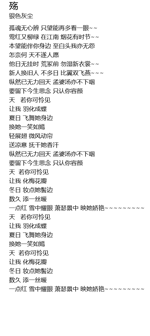 | [00:33.70] | 孤魂无心辨 只望能再多看一眼~~ |