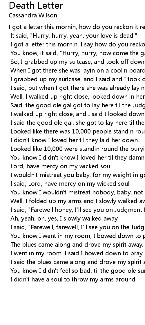 I got a letter this mornin, how do you reckon it read? |