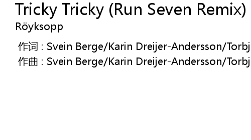 | 歌曲 | Tricky Tricky (Run Seven Remix) |