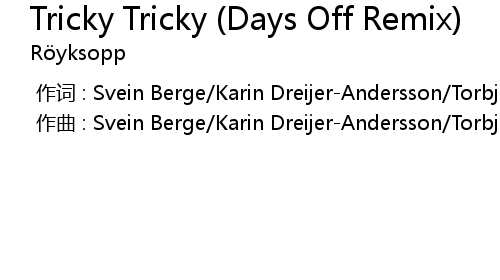 | 歌曲 | Tricky Tricky (Days Off Remix) |