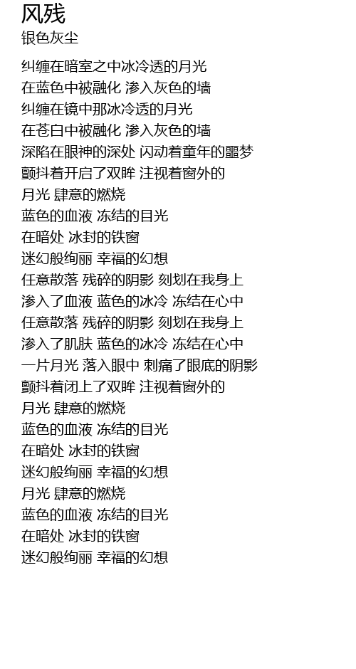 | [03:06.14] | 蓝色的血液 冻结的目光 |