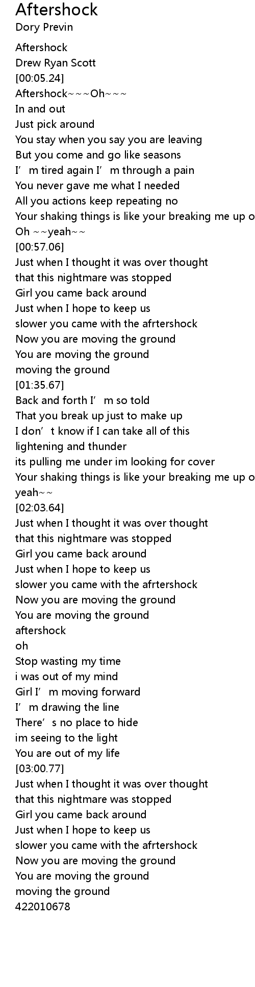 | [01:12.78] | slower you came with the afrtershock |