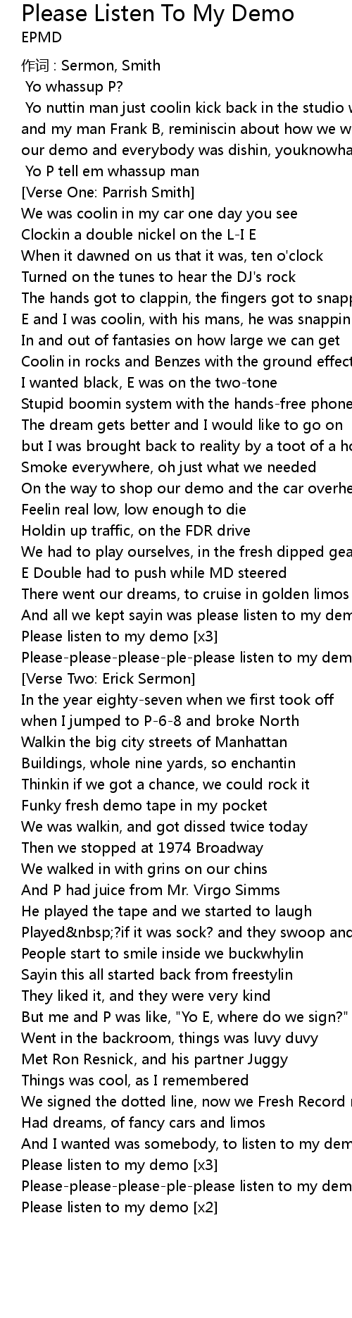 | our demo and everybody was dishin, youknowhatI'msayin? | |