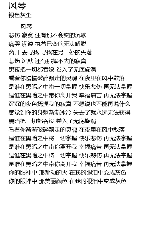 | [05:43.33] | 你的眼神中 那美丽颜色 在我的眼泪中变成灰色 |