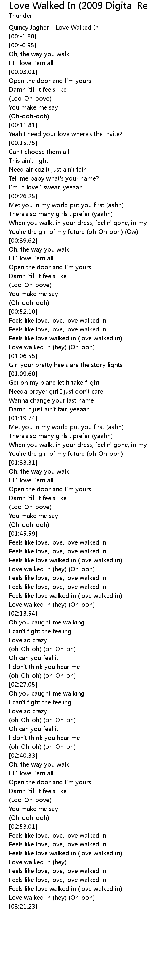 | [03:17.73] | Love walked in (hey) (Oh-ooh) |