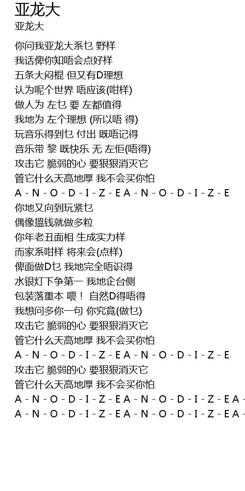 | nǐ wèn wǒ yà lóng dà xì miē yě yàng | |
