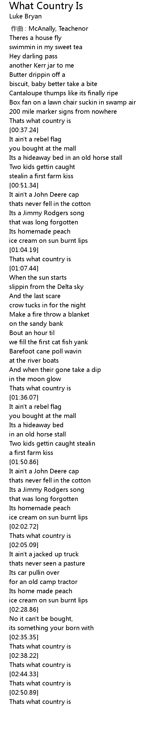 | [00:34.55] | Thats what country is |