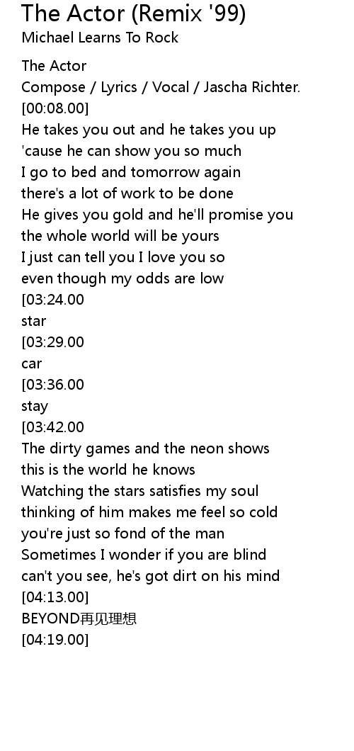 | [03:48.00][03:24.00][02:36.00][02:12.00][01:01.00] | I'm not an actor I'm not a star |