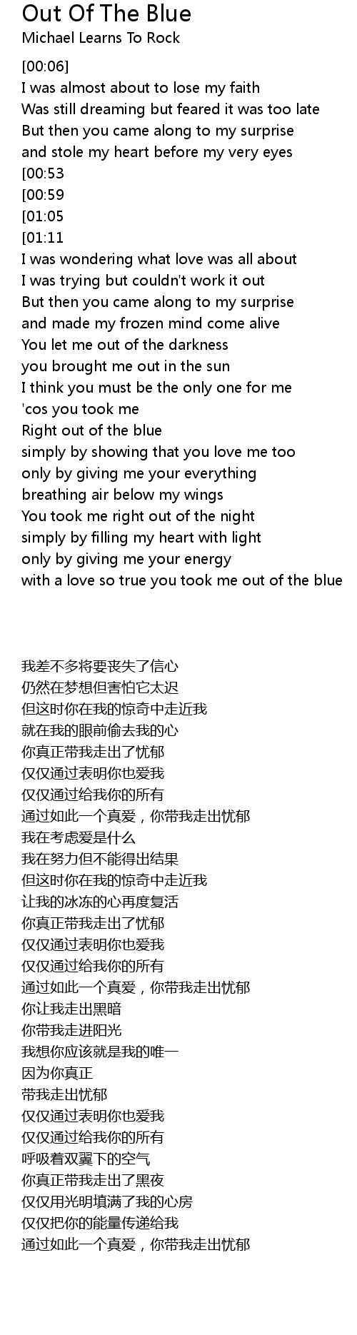 You took me right out of the blue |