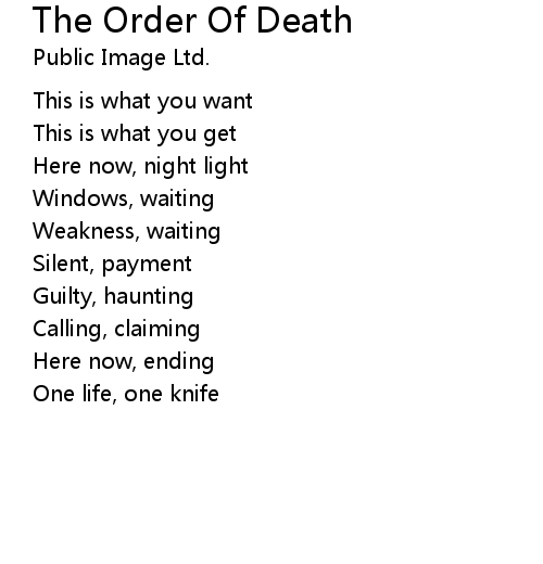 | 歌曲 | The Order Of Death |
