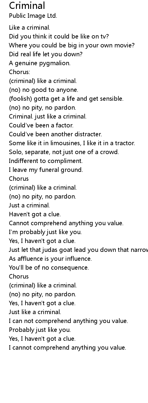 Criminal. just like a criminal. |