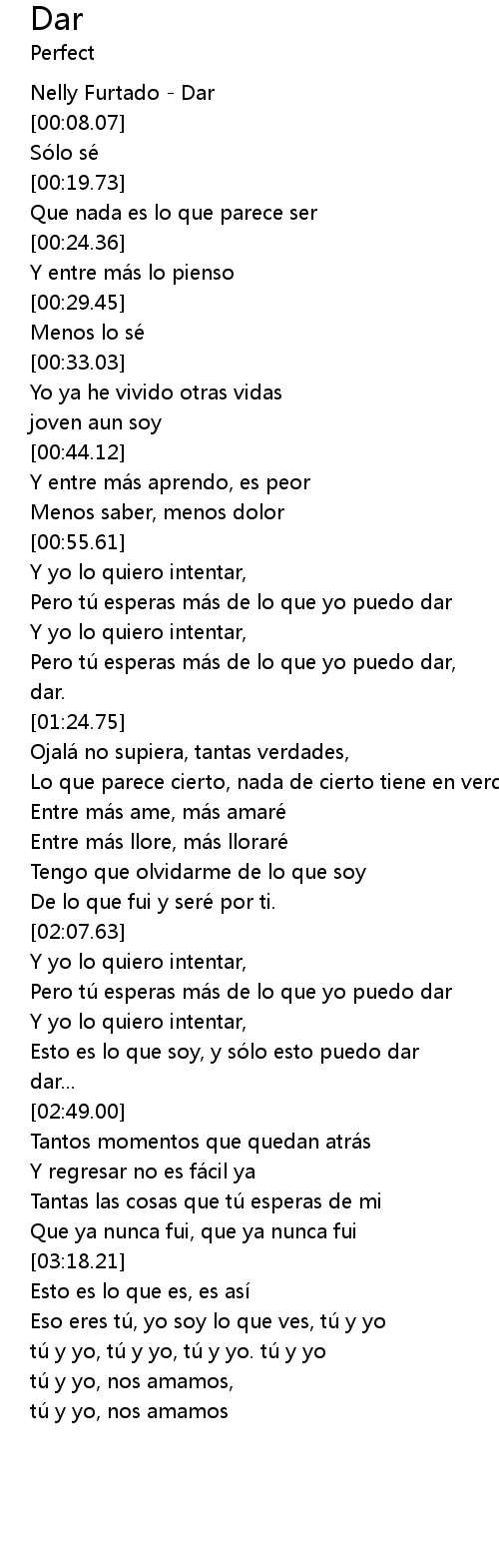 | [03:29.59] | Eso eres tú, yo soy lo que ves, tú y yo |
