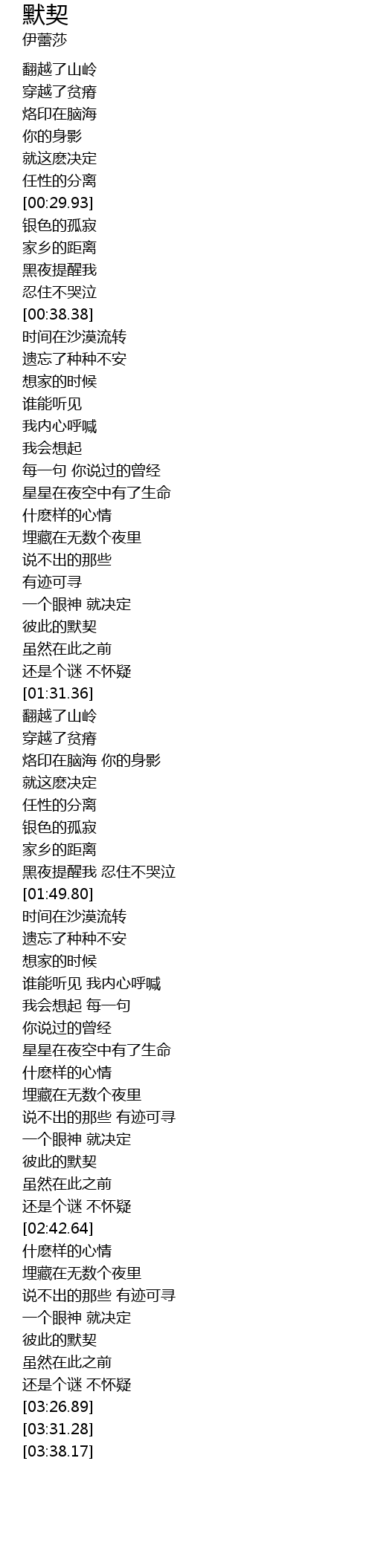 | [02:29.76] | 彼此的默契 |