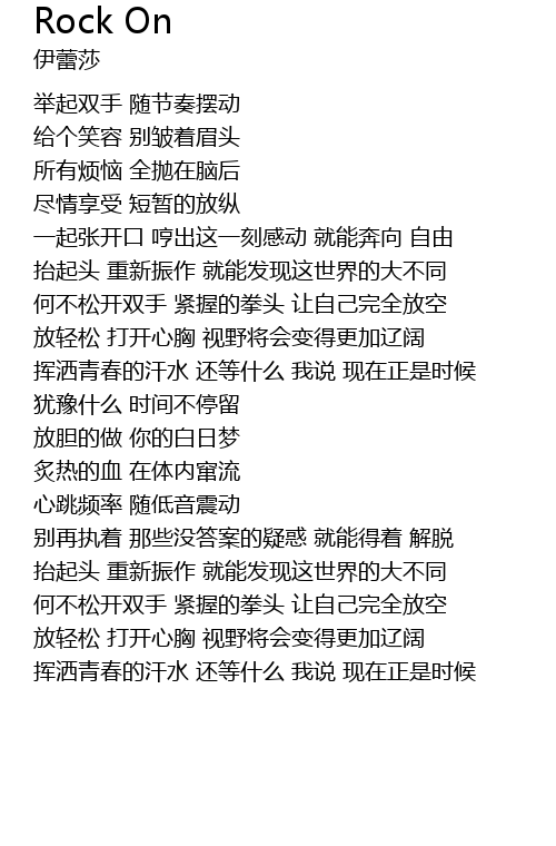 | 一起张开口 哼出这一刻感动 就能奔向 自由 | |