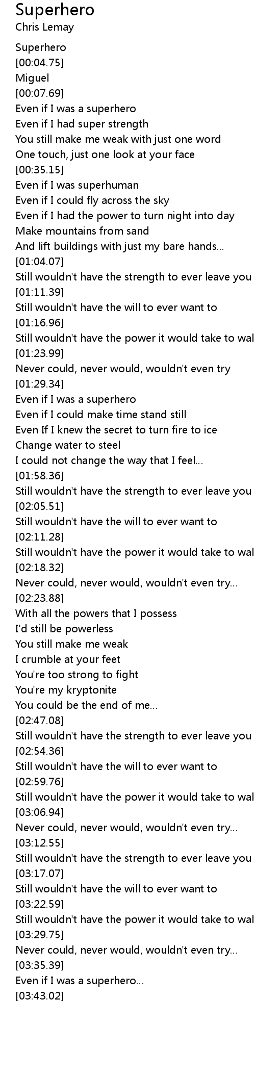 | [00:02.47] | Superhero |