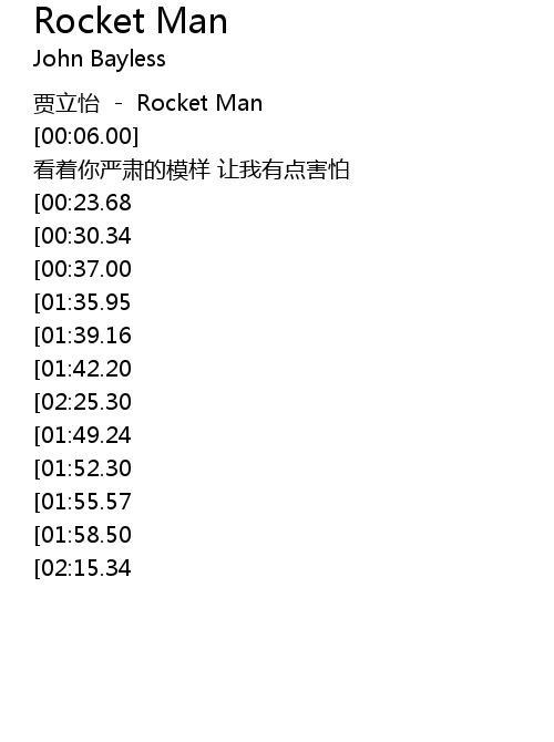 | [00:02.00] | 贾立怡 - Rocket Man |