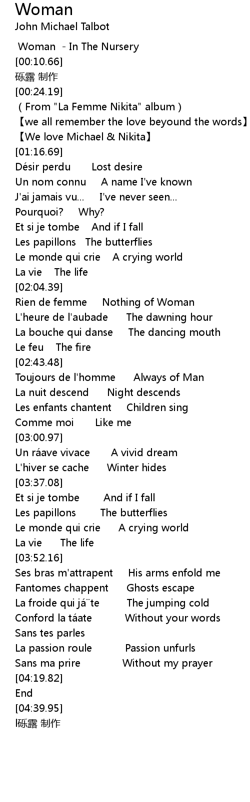 | [00:54.07] | (From "La Femme Nikita" album) |