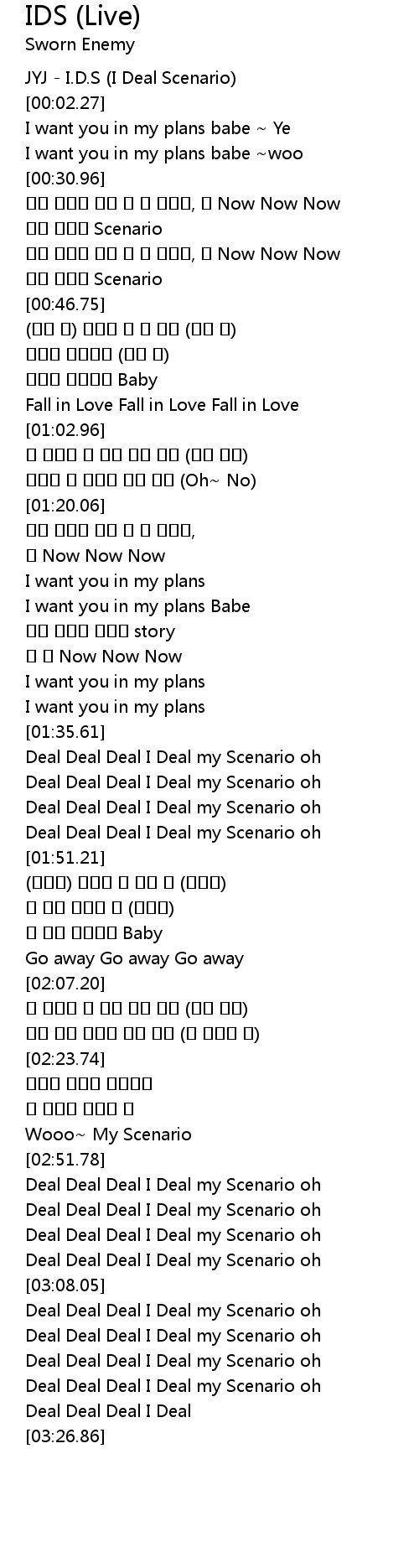 | [00:00.10] | JYJ I. D. S I Deal Scenario |